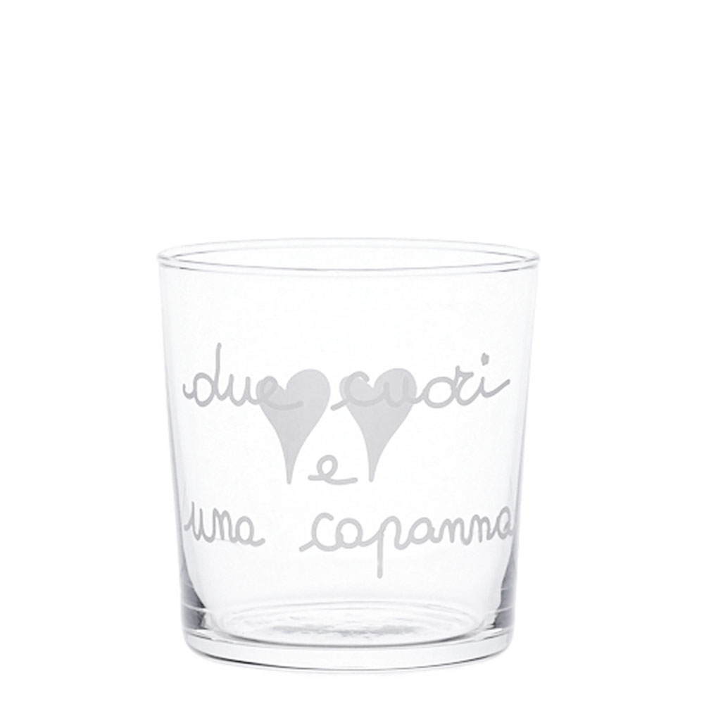 Il bicchiere Due Cuori di Simple Day ha una capacità di 37 cl, progettato per un uso quotidiano e versatile. La sua forma e design lo rendono adatto per diverse occasioni.