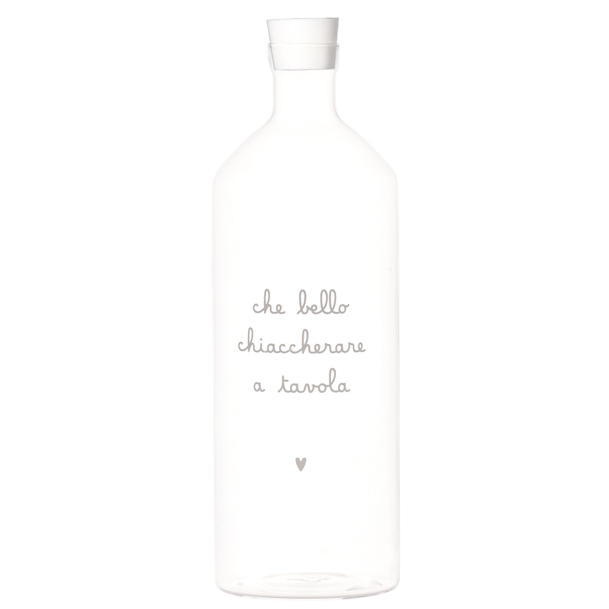 La bottiglia “Che Bello Chiacchierare” di Simple Day è un accessorio per la tavola che unisce design e funzionalità. La sua struttura è studiata per garantire una presa comoda e una facile versatilità nell’uso. Ideale per servire acqua o altre bevande, si integra perfettamente in qualsiasi contesto domestico o professionale.
