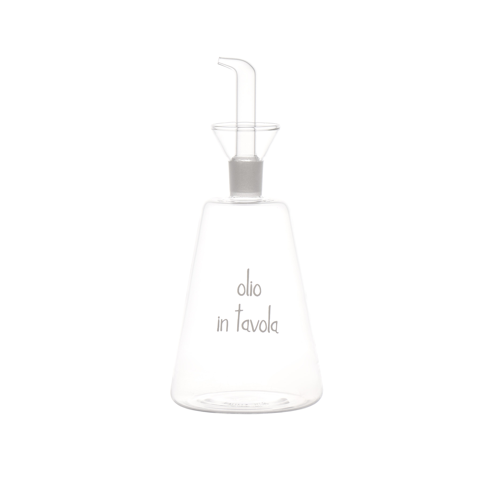 Bottiglia conica da 500 ml, progettata per l’uso in tavola. Realizzata per contenere olio, presenta un design pratico e funzionale.