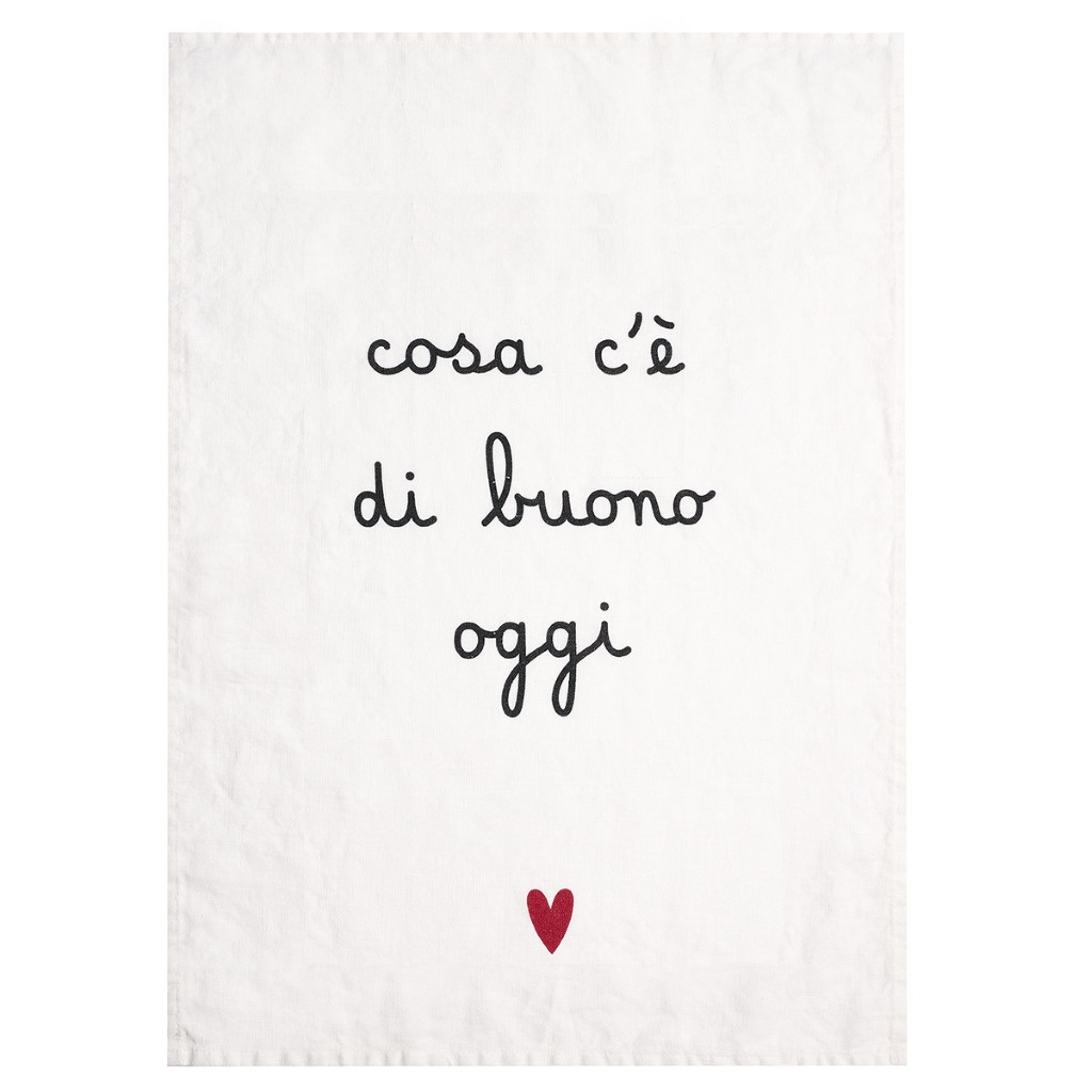 Il canovaccio della linea Simple Day è realizzato per soddisfare le esigenze quotidiane in cucina. Con una dimensione di 50×70 cm, offre una superficie adeguata per asciugare stoviglie e mani. La grafica “Cosa C’e’ di Buono Oggi” aggiunge un tocco di stile all’ambiente culinario, mantenendo al contempo la praticità necessaria per un utilizzo frequente.