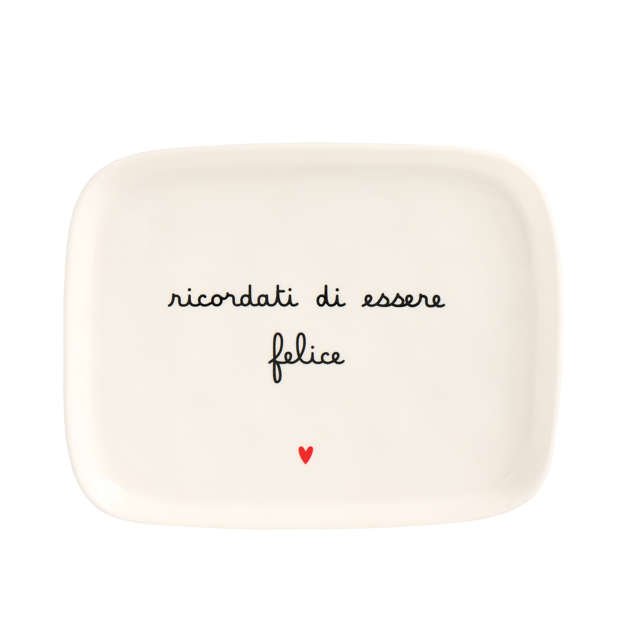 Piatto della linea Simple Day con dimensioni di 20×15.5 cm, caratterizzato dalla scritta “Ricordati di Essere Felice”. Prodotto adatto per l’uso quotidiano.