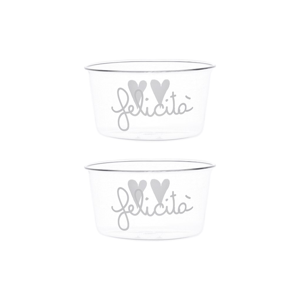 Set di 2 coppette in vetro della linea Simple Day, modello Felicità. Prodotto progettato per l’uso quotidiano in ambito tavola.