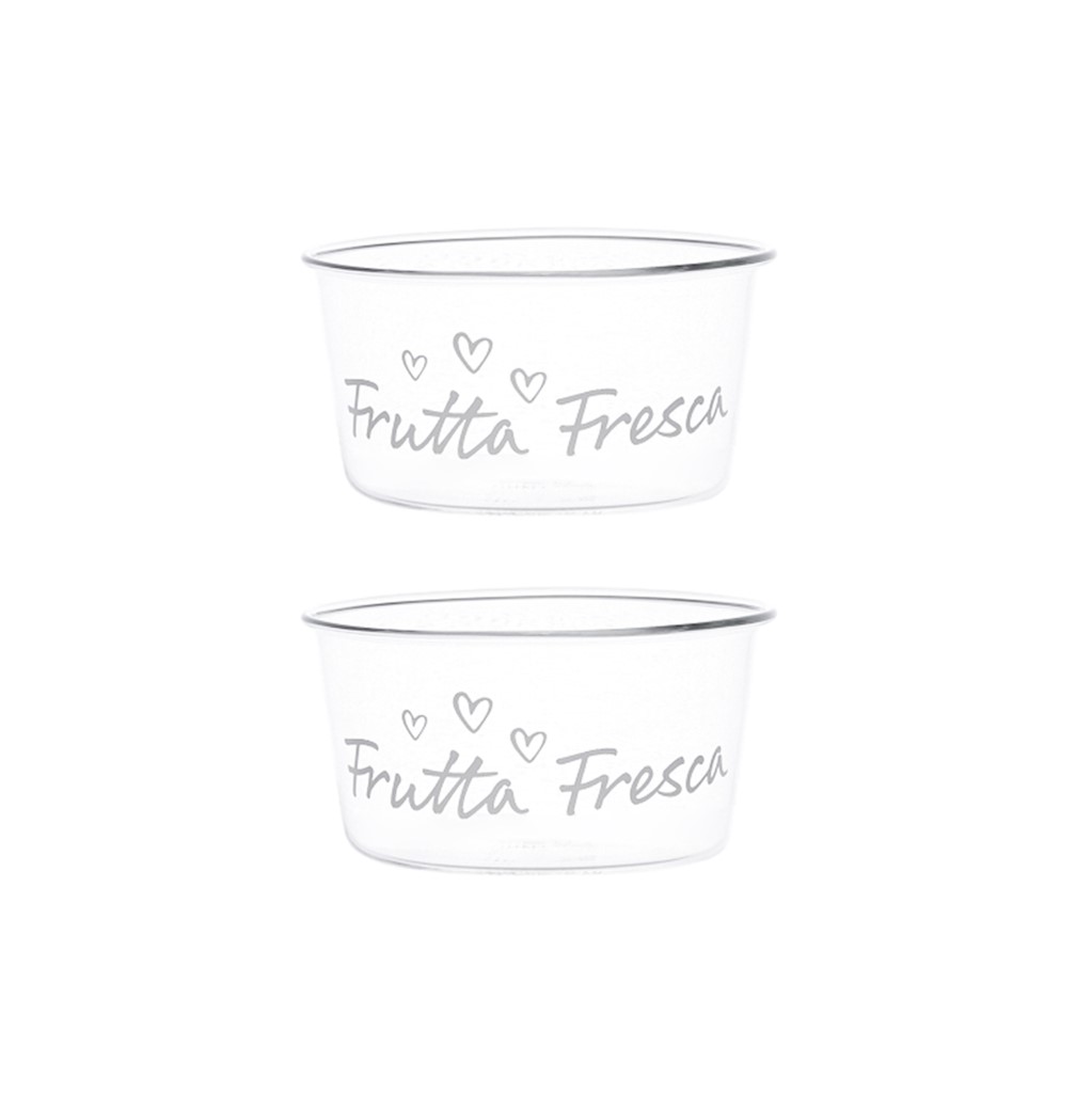Set di due coppette in vetro, progettate per la presentazione di frutta fresca. Realizzate con materiali di alta qualità, queste coppette offrono un design elegante e funzionale.