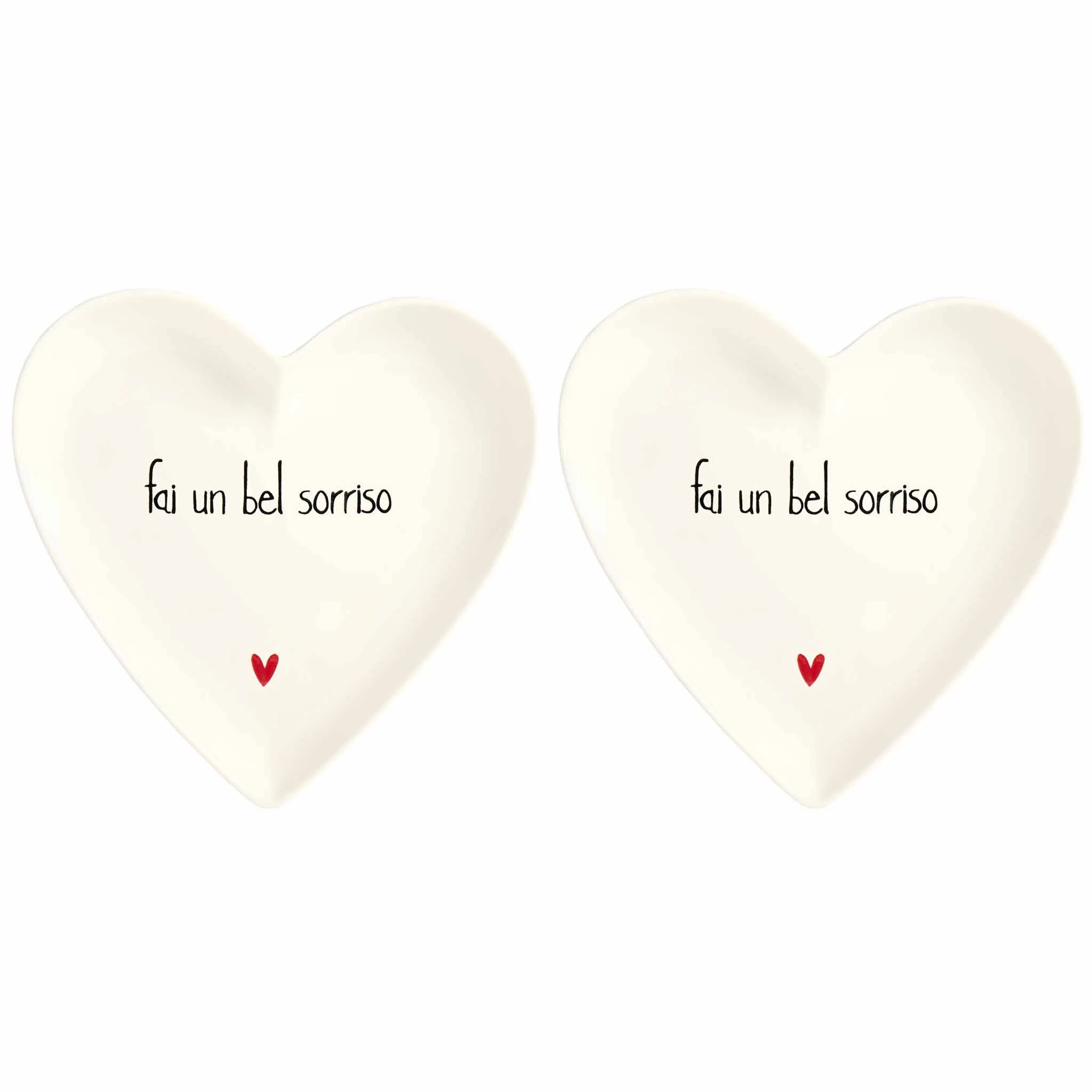 Set di 2 piatti a forma di cuore con un diametro di 18 cm, appartenenti alla linea Tavola del brand Simple Day. Progettati per un utilizzo versatile nella presentazione di cibi.