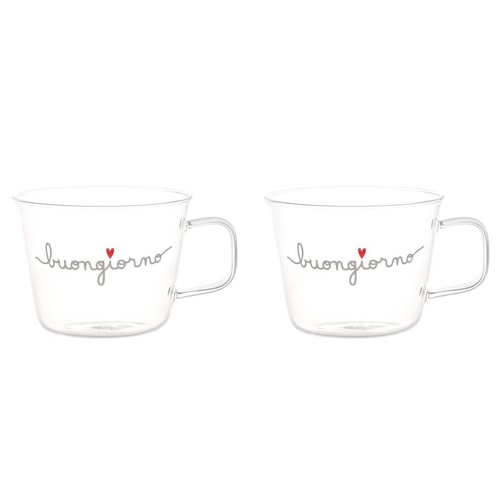 Simple Day – Set 2 Tazze In Vetro 480 Ml Buongiorno Cuore Rosso