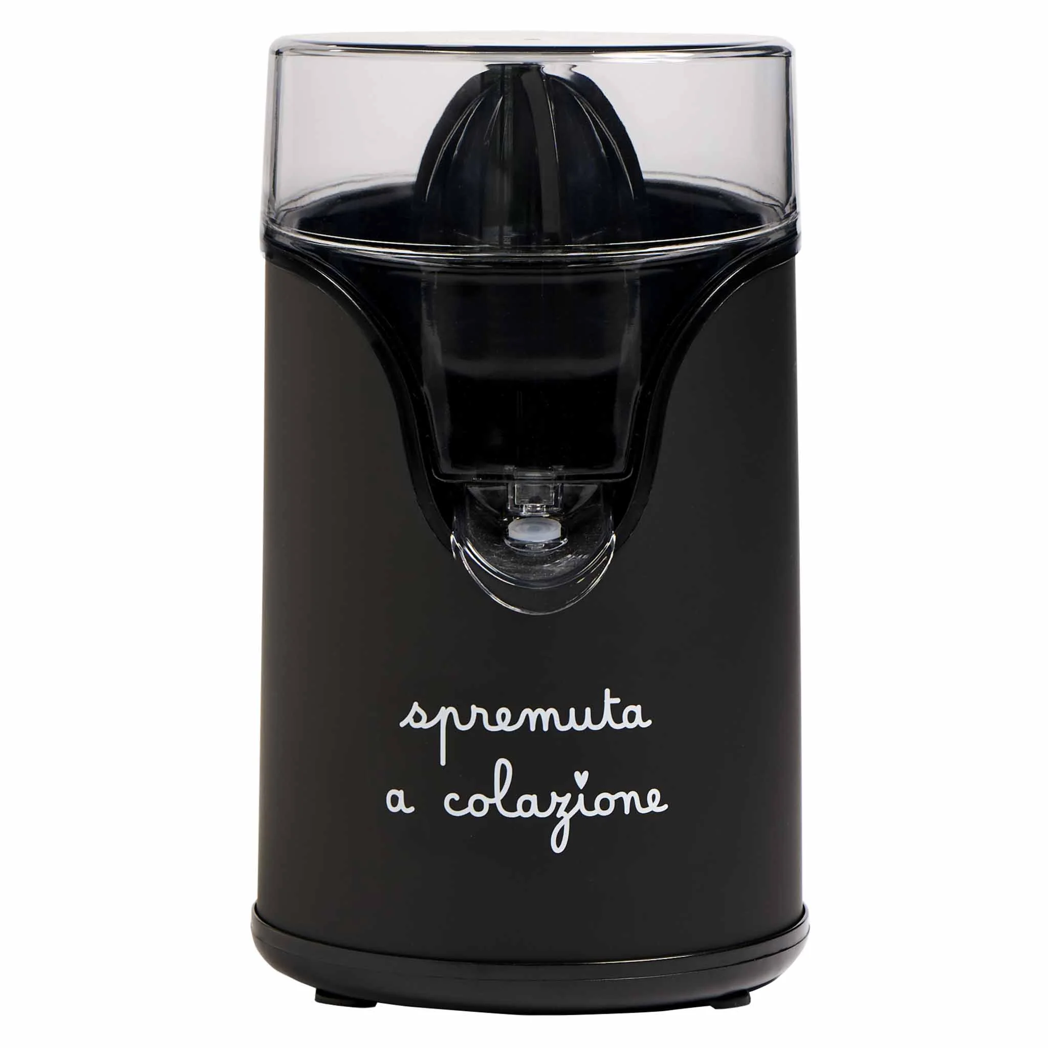 Spremiagrumi della linea Simple Day, progettato per la preparazione di spremute fresche a colazione. Colore nero, adatto a vari stili di cucina.