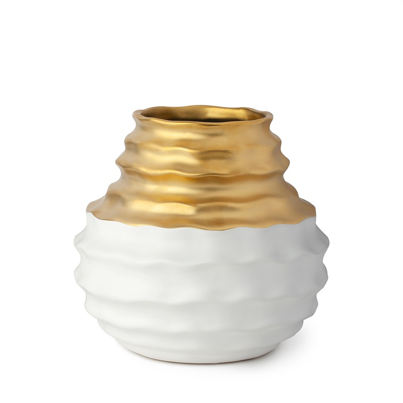 VASO GRES BIANCO/ORO DIA.15X15CM