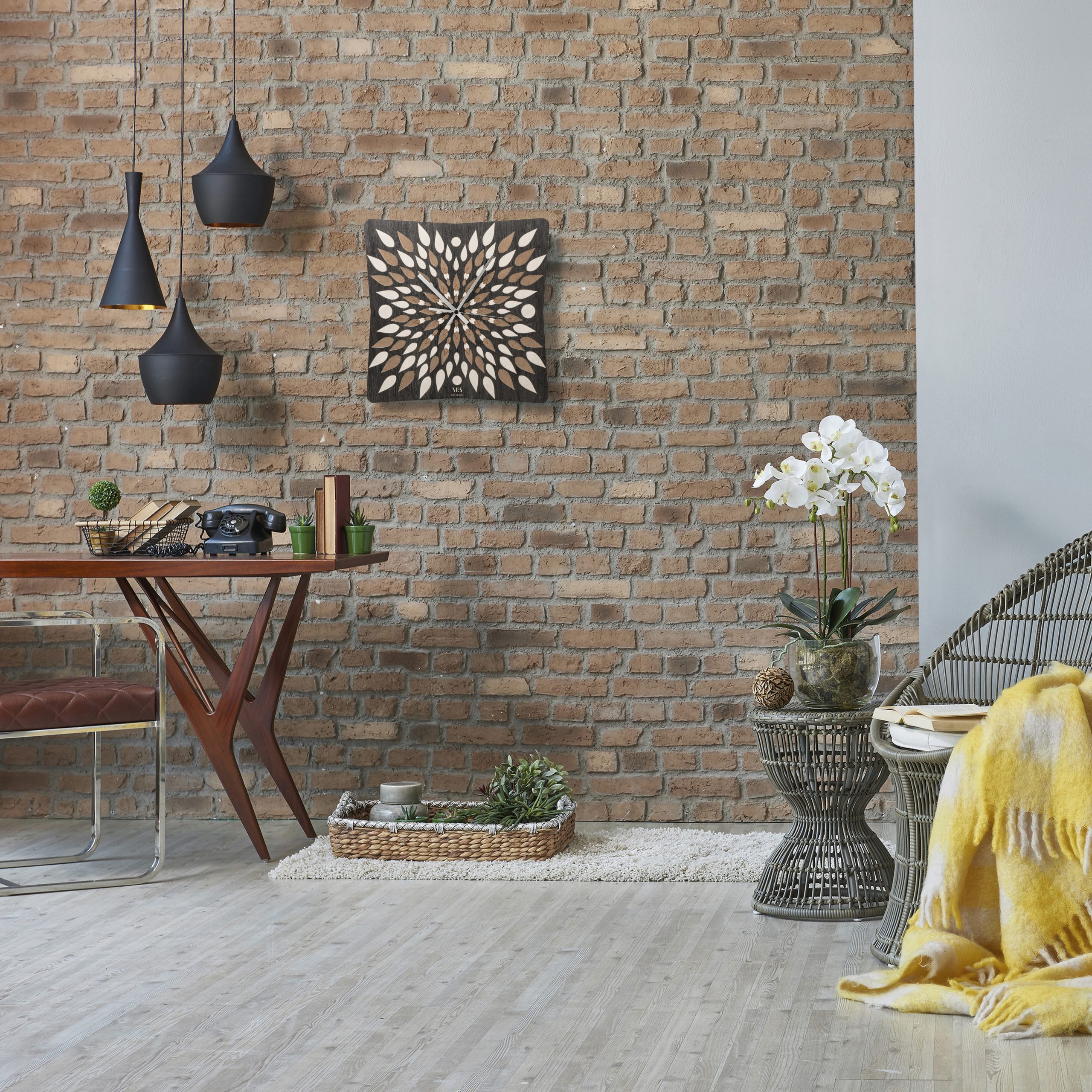 Moderno orologio quadrato da parete in legno 100% Made in Italy, con meccanismo tedesco e batteria a litio inclusa. Lavorato con tecnologie di ultima generazione che, strato dopo strato, danno vita a texture tridimensionali e sfumature differenti. Espressione autentica del Made in Italy, l’orologio da parete in legno rappresenta così un oggetto di design adatto ad arredare e impreziosire il soggiorno e la cucina della vostra casa. Dimensioni: cm 40×40.