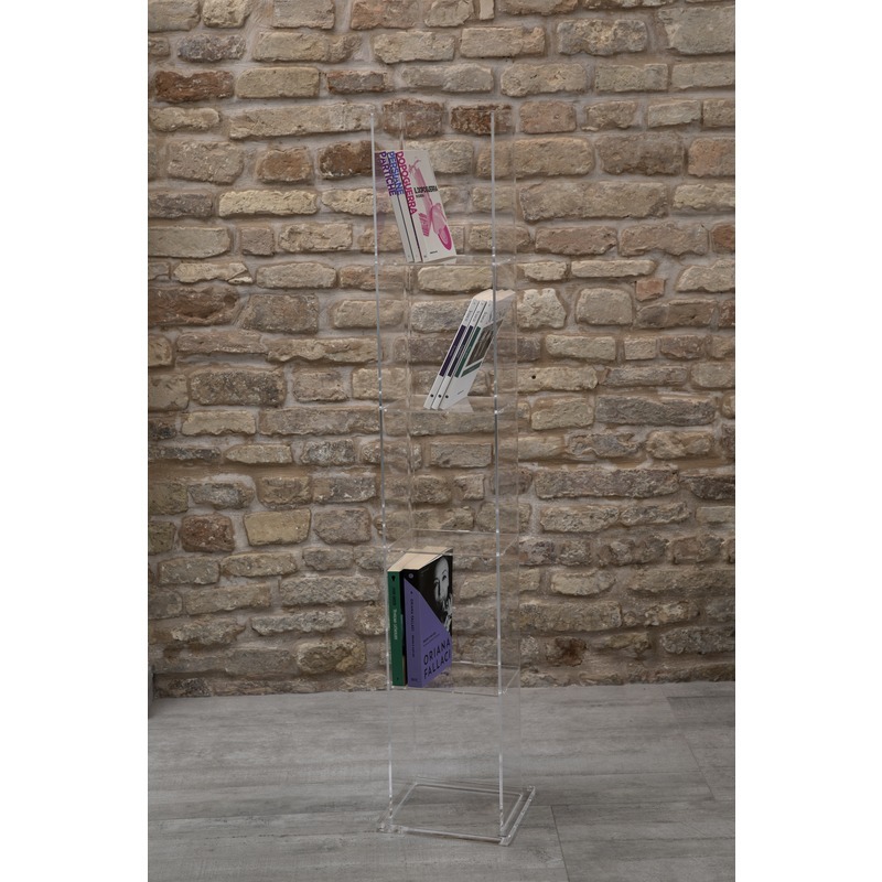 Vesta Home – BOOK TOWER Libreria alta in cristallo acrilico trasparente dim. 24x22x124,5h cm Made in Italy