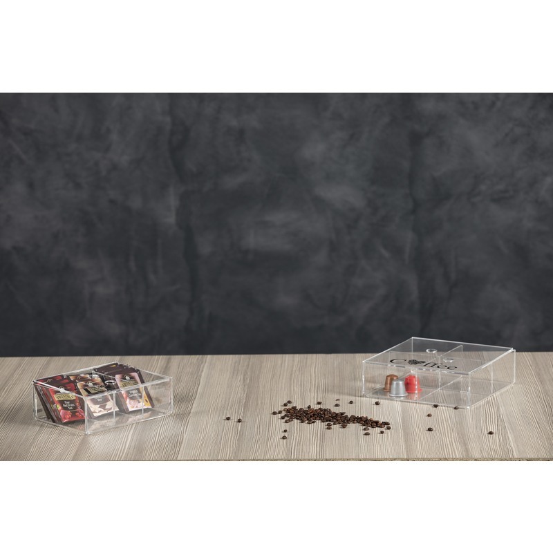 Vesta Home – BREAK ONLY COFFEE Portacialde caffè con coperchio in cristallo acrilico trasparente dim. 22x22x7h cm – Una proposta unica e curata nei dettagli, pensata per sorprendere e valorizzare ogni occasione speciale con stile ed emozione.