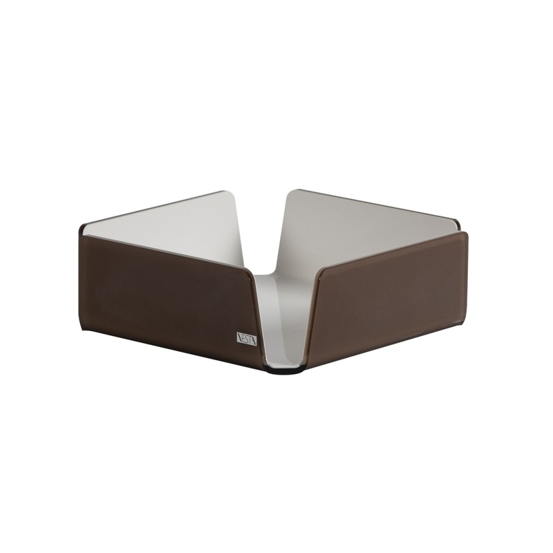 Vesta Home – Cestino Portatovaglioli da tavolo linea Like Water in cristallo acrilico marrone satinato/bianco dim. 18,5×18,5×6 cm