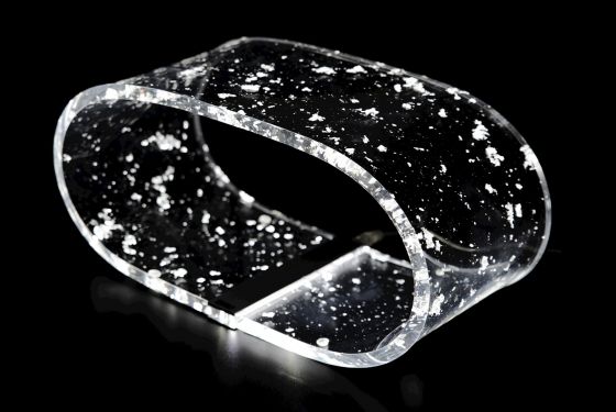 Vesta Home – FUTURE Lampada da tavolo in cristallo acrilico con foglie color argento dim. 33×14,5×16 h cm