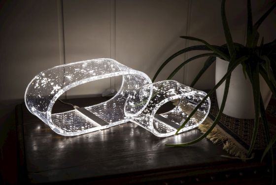 Vesta Home – FUTURE Lampada da tavolo in cristallo acrilico con foglie color argento dim. 33×14,5×16 h cm – Una proposta unica e curata nei dettagli, pensata per sorprendere e valorizzare ogni occasione speciale con stile ed emozione.