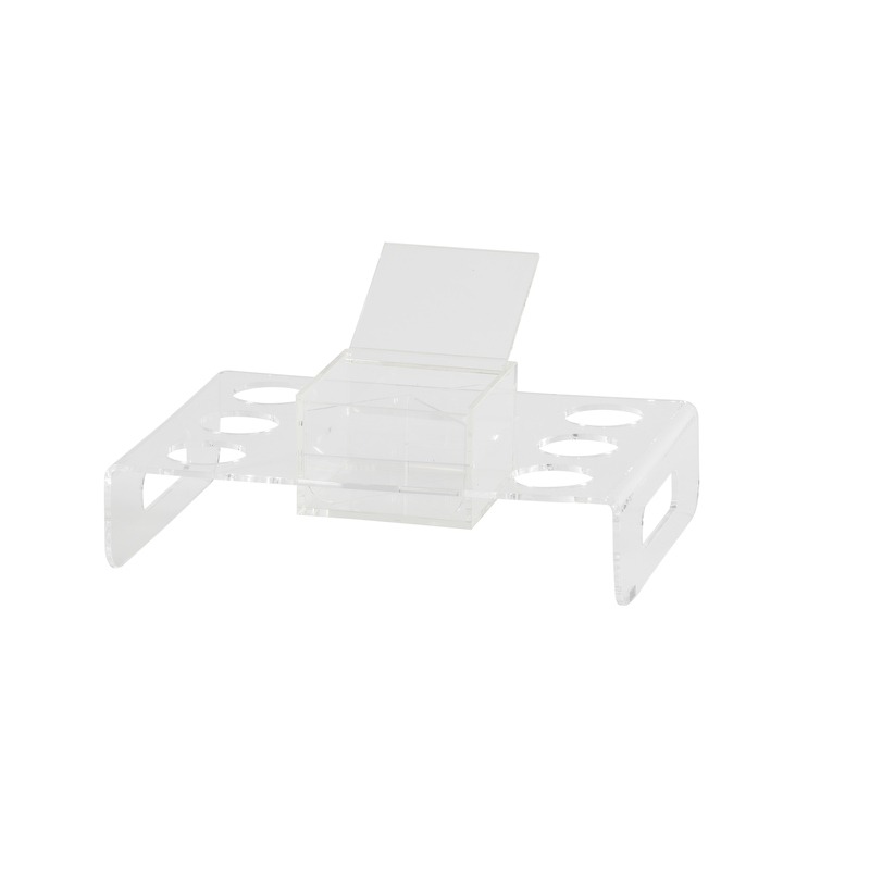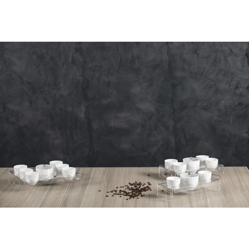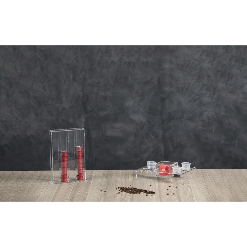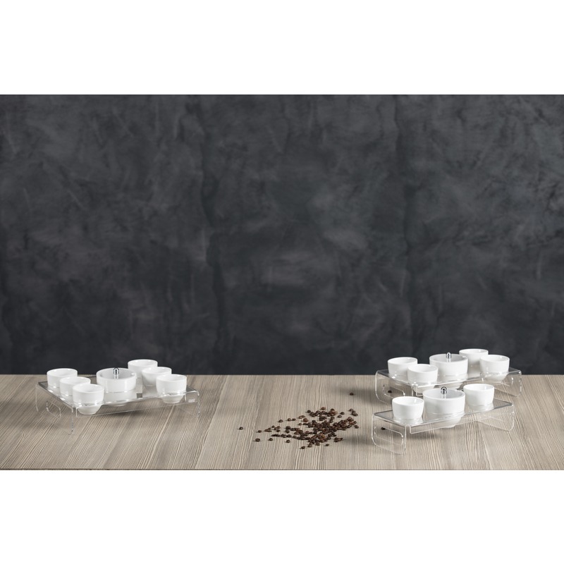 Vesta Home – LIKE WATER BREAK Coffee Box Vassoio porta caffè in cristallo acrilico trasparente con 6 sedi per bicchierini e 4 sedi per palette e zucchero, dim. 29x20x7 h cm