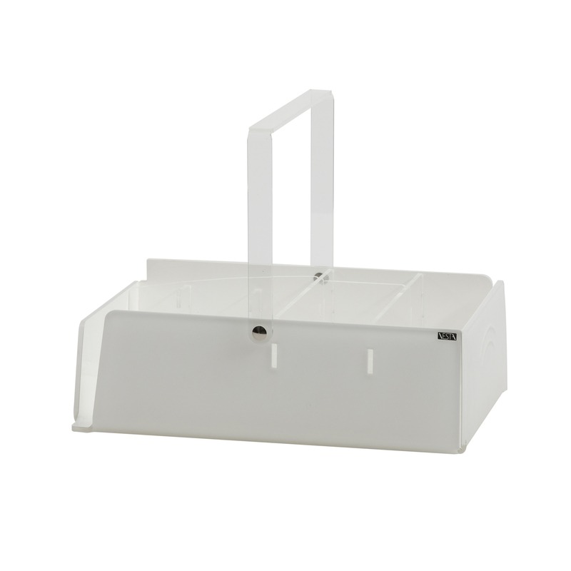 Vesta Home – LIKE WATER Contenitore portavivande da tavolo in cristallo acrilico bicolore bianco monosatinato con manico dim. 34x23x26 cm