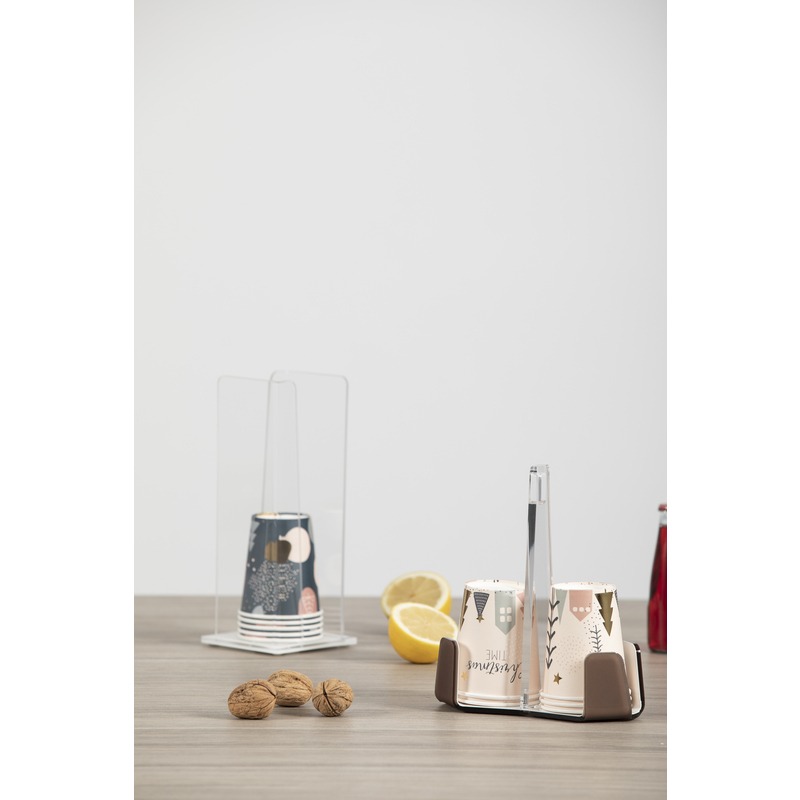 Vesta Home – LIKE WATER ICE Portabicchieri da tavolo verticale in cristallo acrilico bicolore bianco monosatinato dim. 10,1×10,1×25 cm