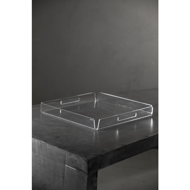 Vesta Home – LIKE WATER Vassoio da tavolo quadrato in cristallo acrilico trasparente dim. 40x40x5 cm