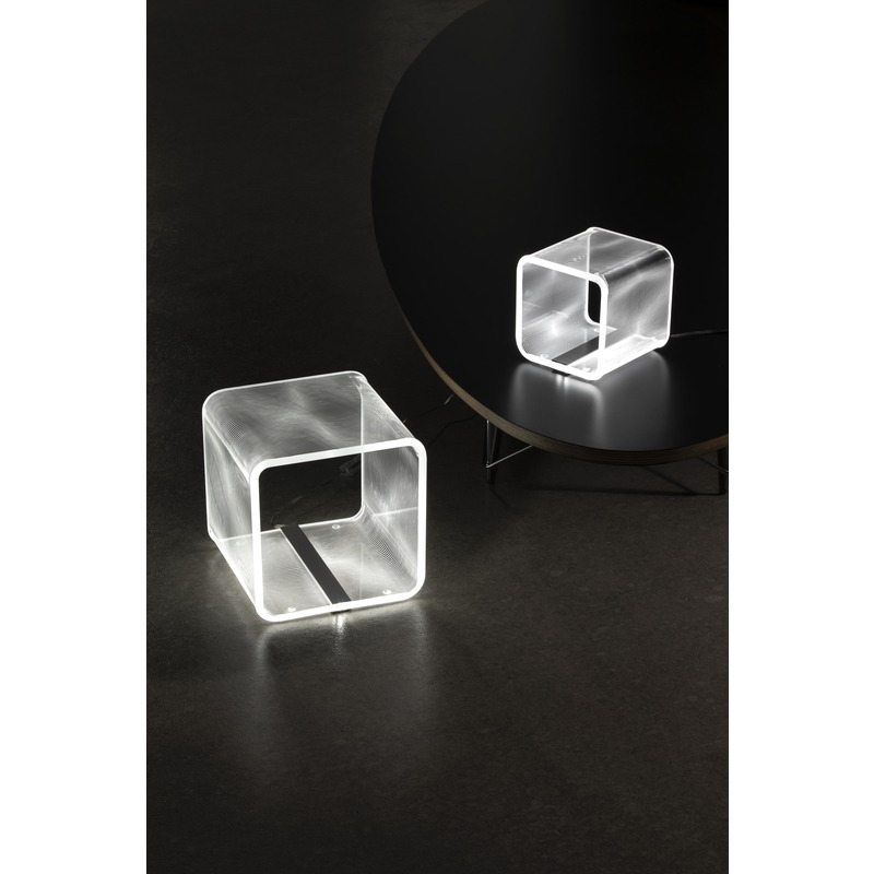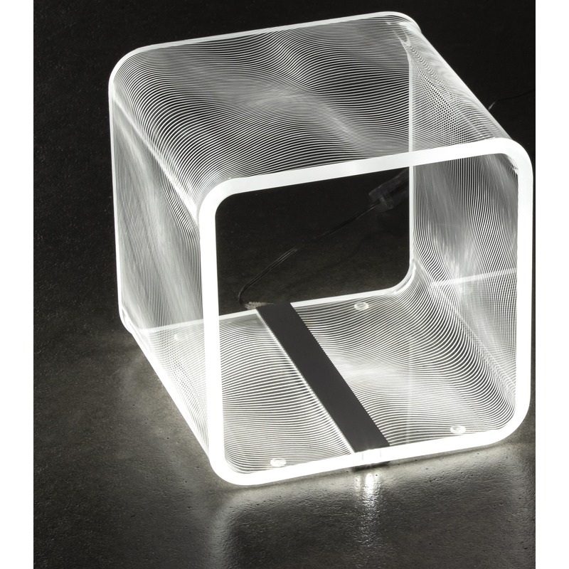 Vesta Home – SOLID FLOTS Lampada media da tavolo in cristallo acrilico trasparente con decoro inciso, luce led bianca, dim.22,5×22,5×22,5h cm
