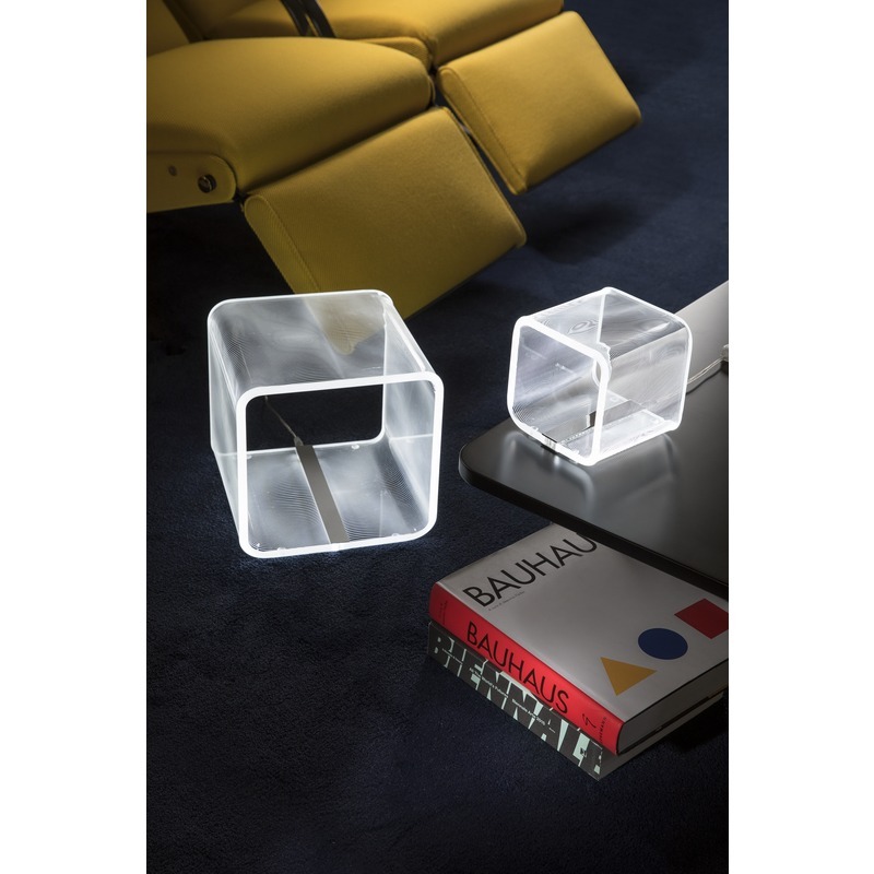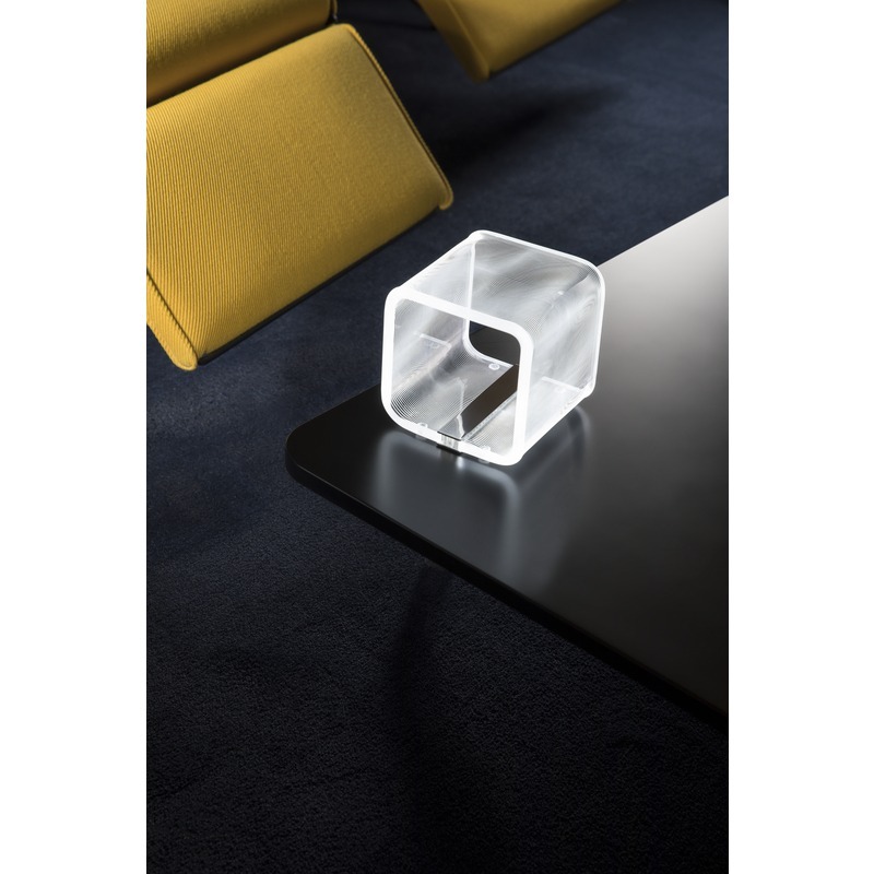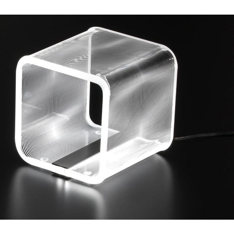 Vesta Home – SOLID FLOTS Lampada piccola da tavolo in cristallo acrilico trasparente con decoro inciso, luce led bianca, dim.14,5×14,5×14,5h cm