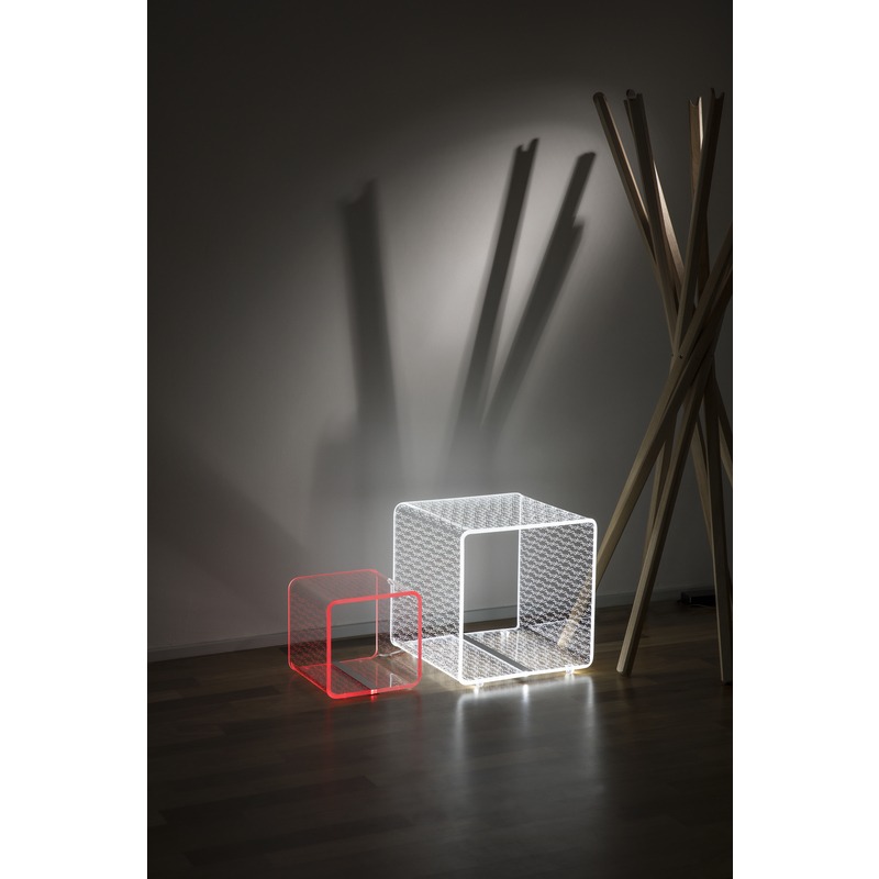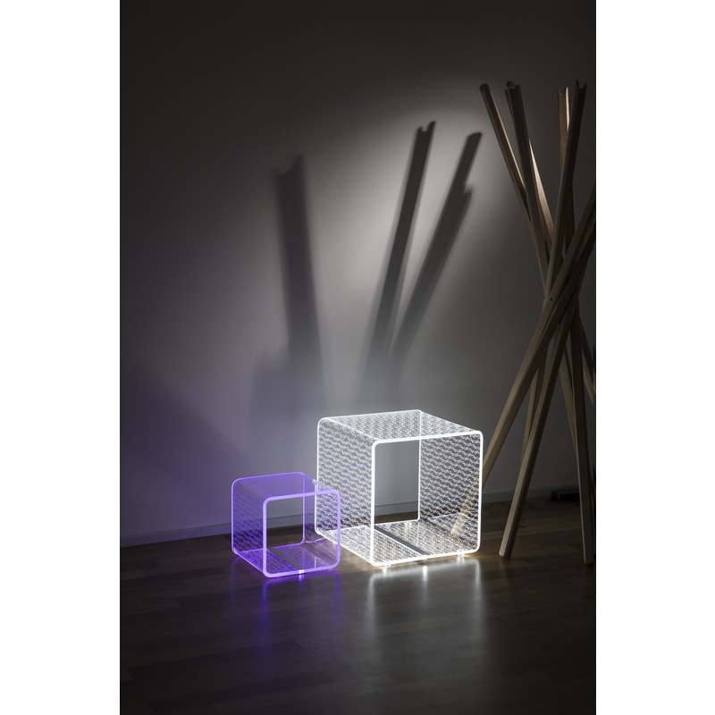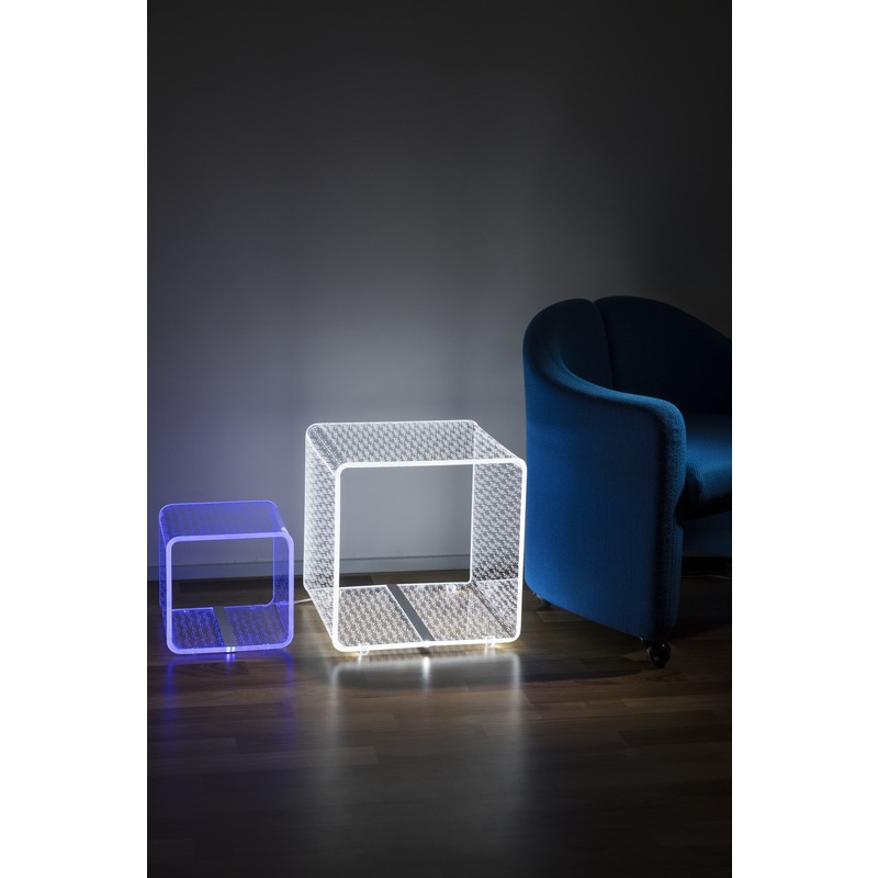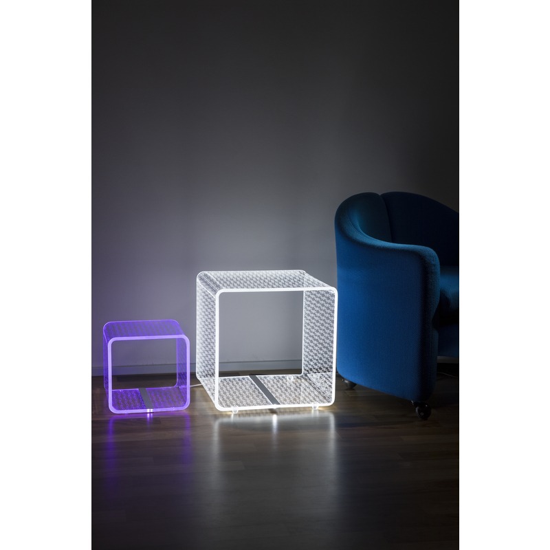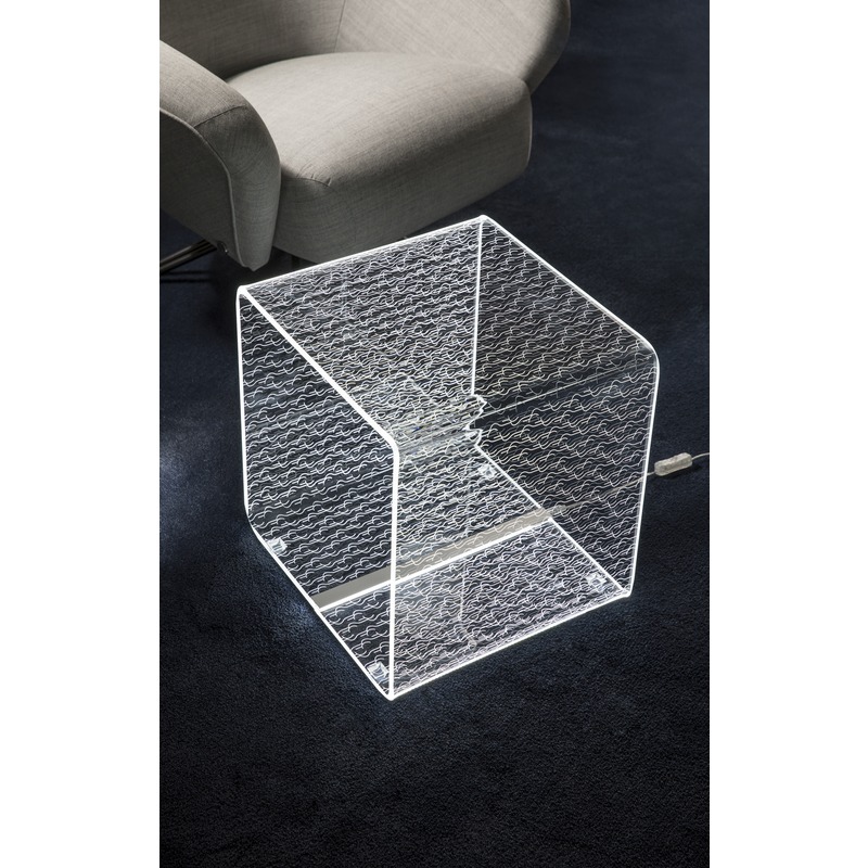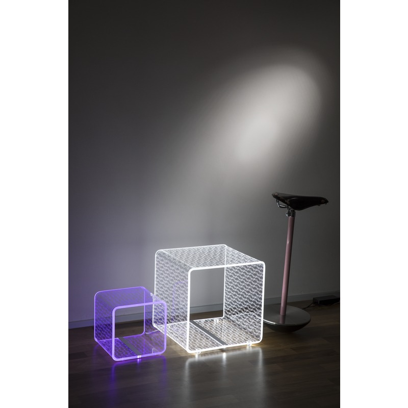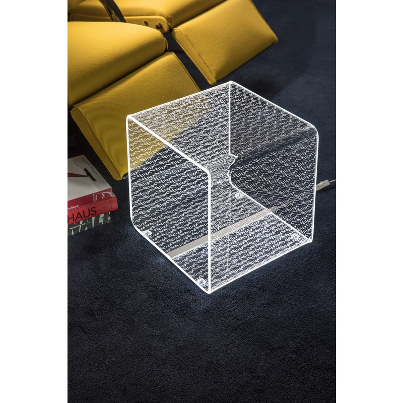 Vesta Home – TITS & BUTTS Lampada e tavolo linea Solid large in cristallo acrilico piegato a mano con incisione laser dim. 37,5×37,5×37,5 cm