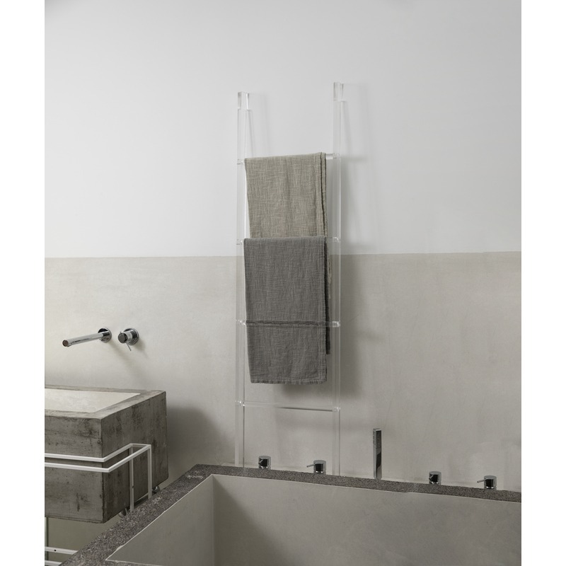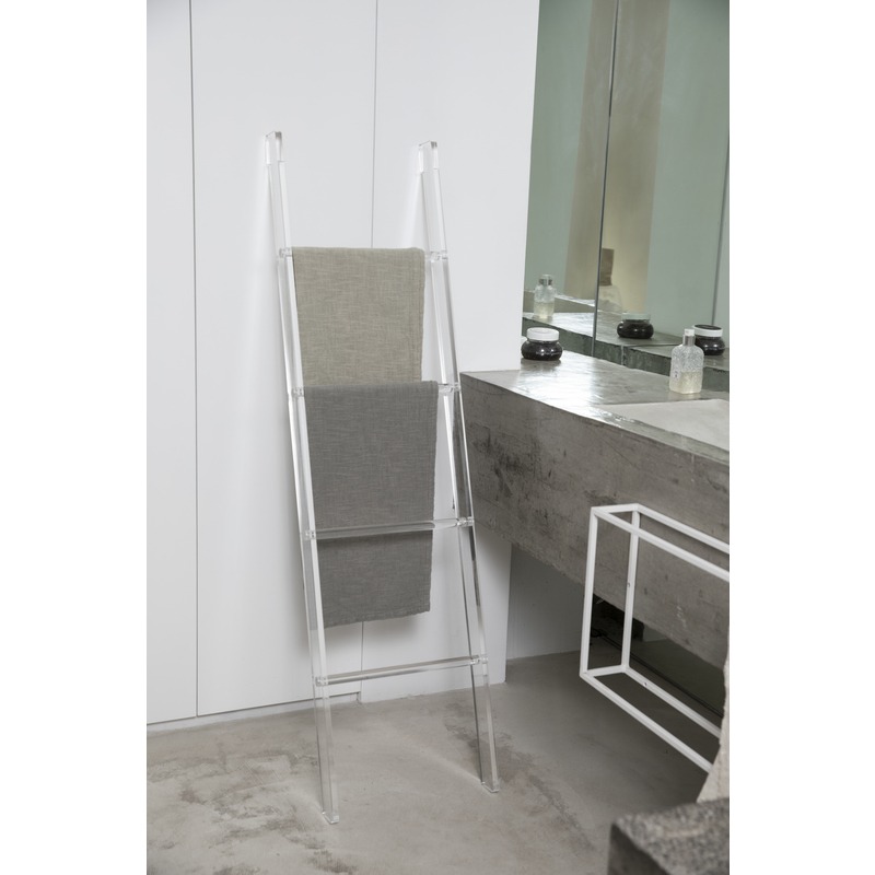 Vesta Home – UP & DOWN Scaletta grande decorativa in cristallo acrilico trasparente con 4 gradini porta-asciugamano dim. 37x8x141h cm