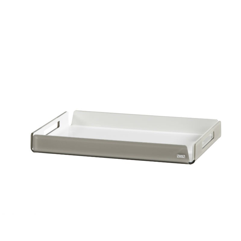 Vesta Home – Vassoio rettangolare maxi da tavolo linea Like Water in cristallo acrilico tortora satinato e bianco dim. 58x39x7 cm