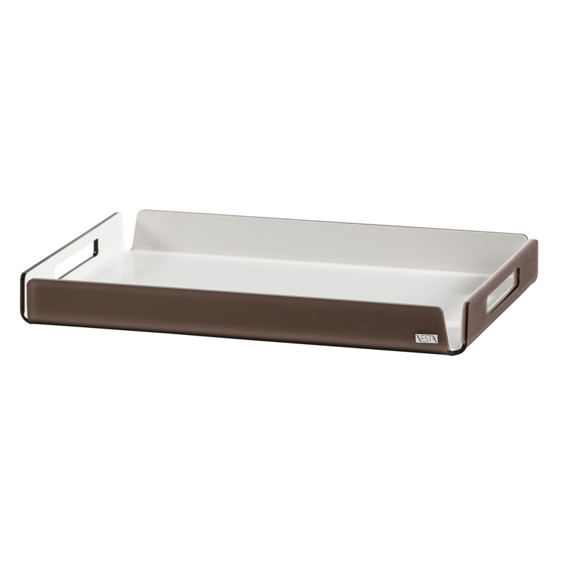 Vesta Home – Vassoio rettangolare mini da tavolo linea Like Water in cristallo acrilico marrone satinato/bianco dim. 32x22x3,5 cm