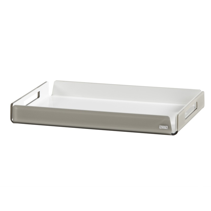 Vesta Home – Vassoio rettangolare mini da tavolo linea Like Water in cristallo acrilico tortora satinato/bianco dim. 32x22x3,5 cm