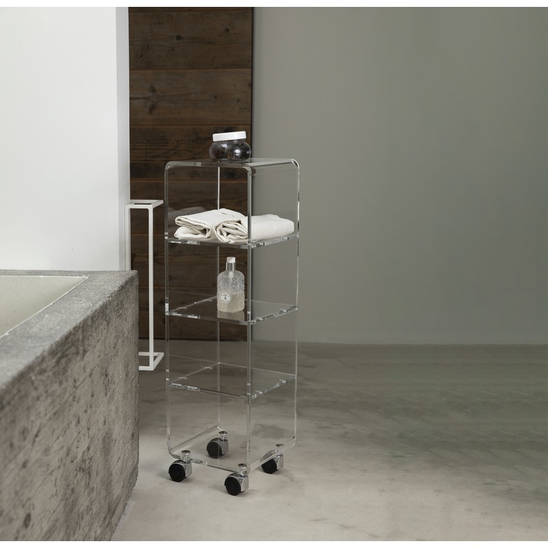Vesta Home – VEGA MULTY S Carrello in cristallo acrilico trasparente con 3 ripiani dim. 25x25x84,5h cm