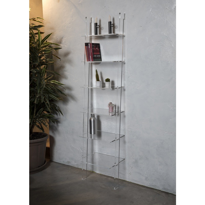 Vesta Home – WAY UP LARGE Scaletta decorativa in cristallo acrilico trasparente con 6 ripiani portaoggetti libri dim. 48×33,5x200h cm