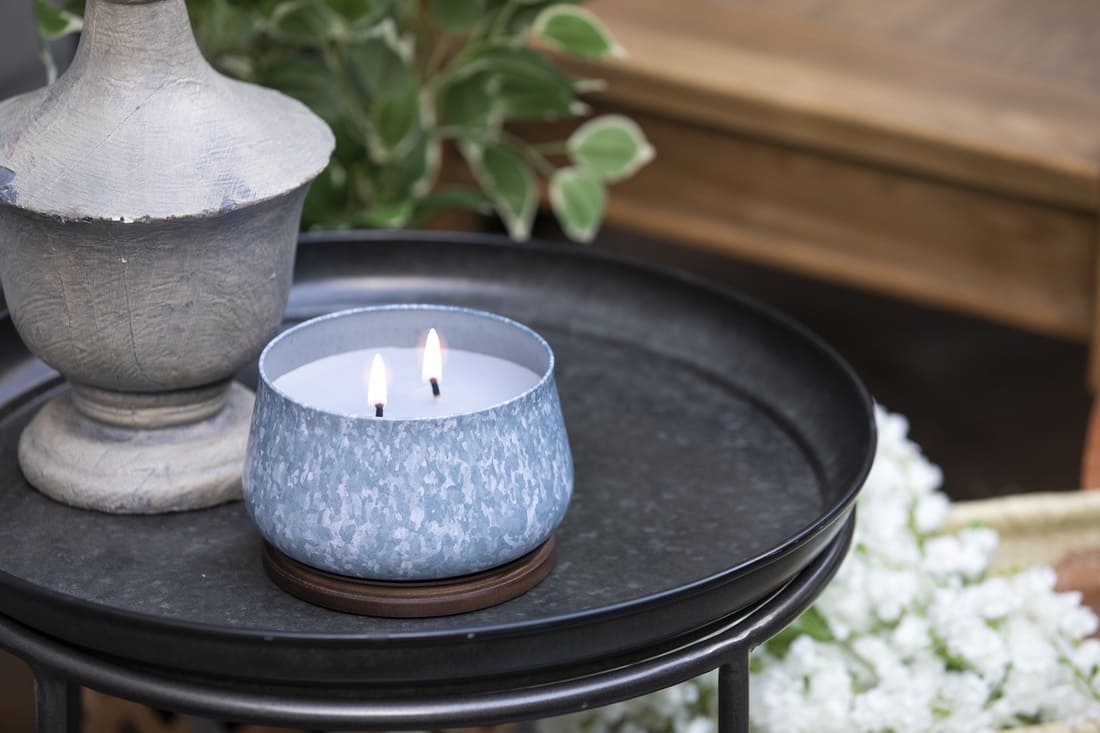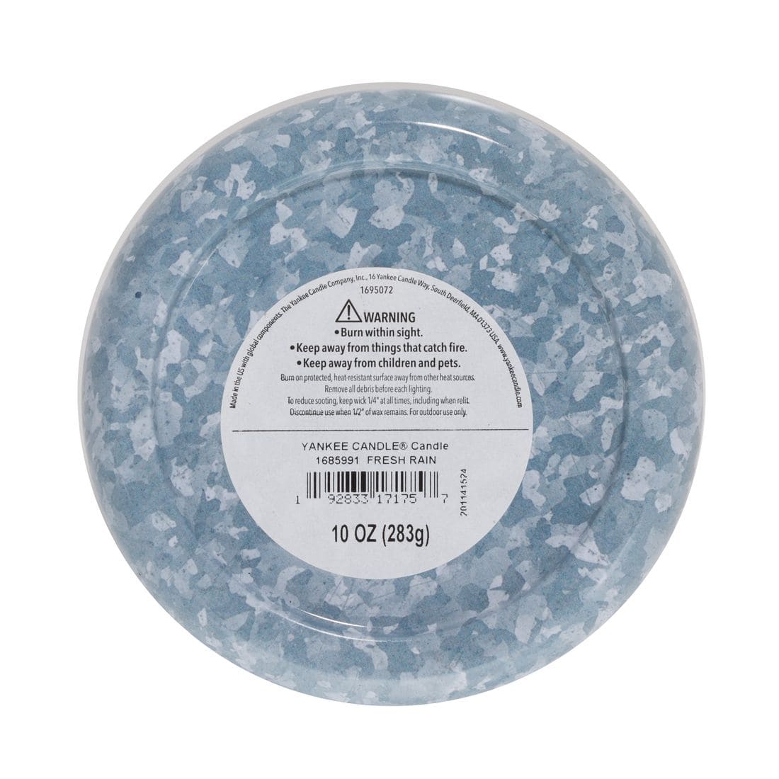 YANKEE CANDLE – Candela da esterno Fresh Rain con contenitore in latta, stoppino da esterno e coperchio in legno naturale – Una proposta unica e curata nei dettagli, pensata per sorprendere e valorizzare ogni occasione speciale con stile ed emozione.