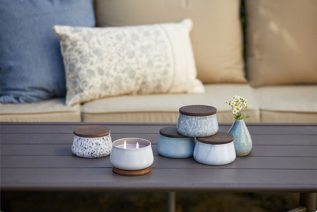 YANKEE CANDLE – Candela da esterno Ocean Hibiscus con contenitore in latta, stoppino da esterno e coperchio in legno naturale – Una proposta unica e curata nei dettagli, pensata per sorprendere e valorizzare ogni occasione speciale con stile ed emozione.